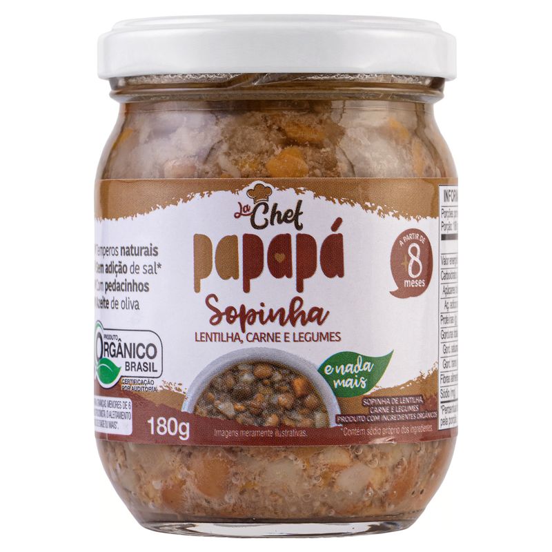 Sopinha Orgânica Papapá La Chef Lentilha, Carne e Legumes Vidro 180g