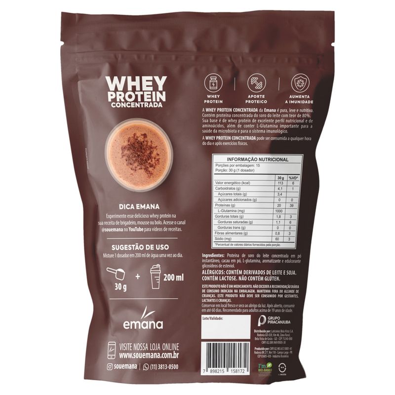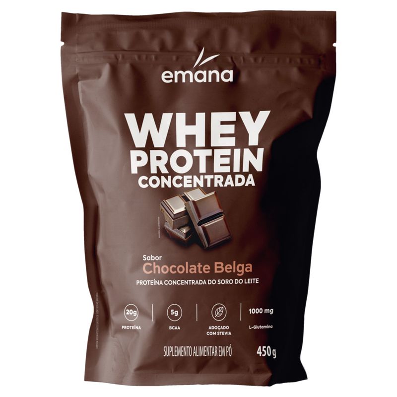Suplemento Alimentar em Pó Emana Whey Protein Concentrada ChocolateBelga Pouch 450g