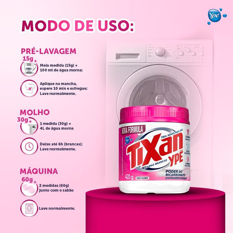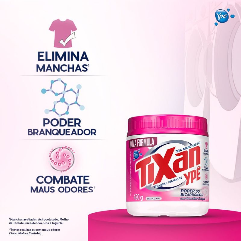 Com enzimas ativas, o Tira Manchas Tixan Ypê age contra as manchas mais difíceis. É eficiente, prático e com a melhor relação de custo-benefício.