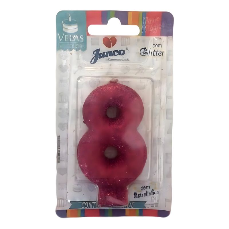 A vela possui 8 cm de altura, um tamanho adequado para se destacar em qualquer bolo. Sua composição é feita de materiais que garantem uma queima limpa e eficiente, sem deixar resíduos indesejados. O acabamento em glitter não só embeleza, mas também é feito para ser seguro, permitindo que você celebre com tranquilidade.