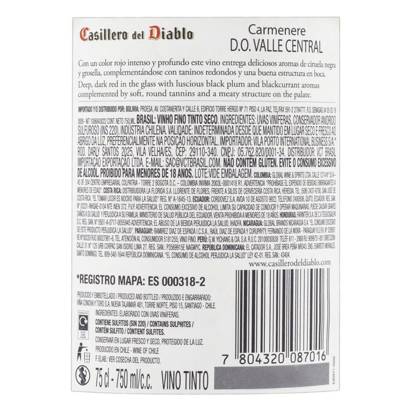 Este vinho é produzido com uvas selecionadas, garantindo um padrão de qualidade elevado. Para preservar suas características, recomenda-se armazená-lo em local fresco e escuro, na posição horizontal, evitando a exposição à luz e variações de temperatura. Com um teor alcoólico equilibrado, o Vinho Chi Casil del Diablo é ideal para quem busca um produto que una qualidade e sabor em cada gole.