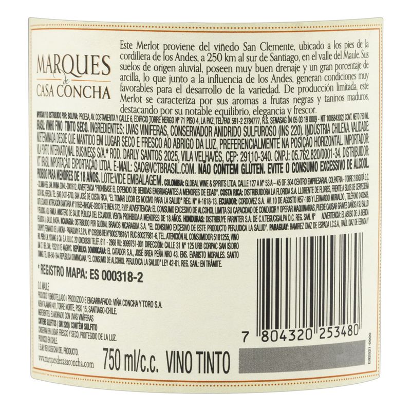 Vinho Chileno Marques de Casa Concha Merlot Valle 750ml